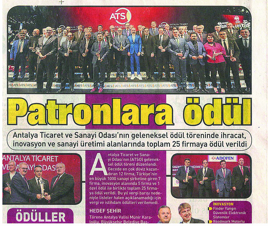 Finder Antalya Ticaret ve Sanayi Odası tarafınca düzenlenen İnovasyon Ödülünü 20 firma arasından seçilerek almıştır.